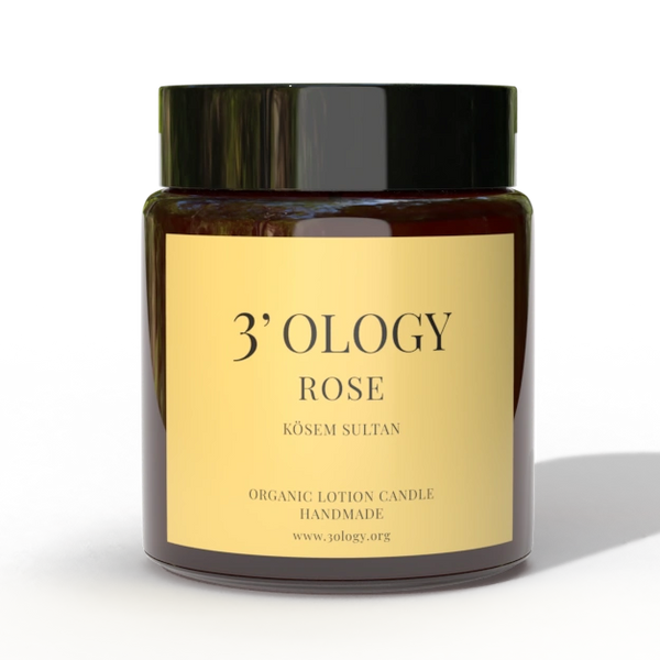 Kösem Sultan's organic lotion candle is scented with 100% pure sourced essential rose oil.